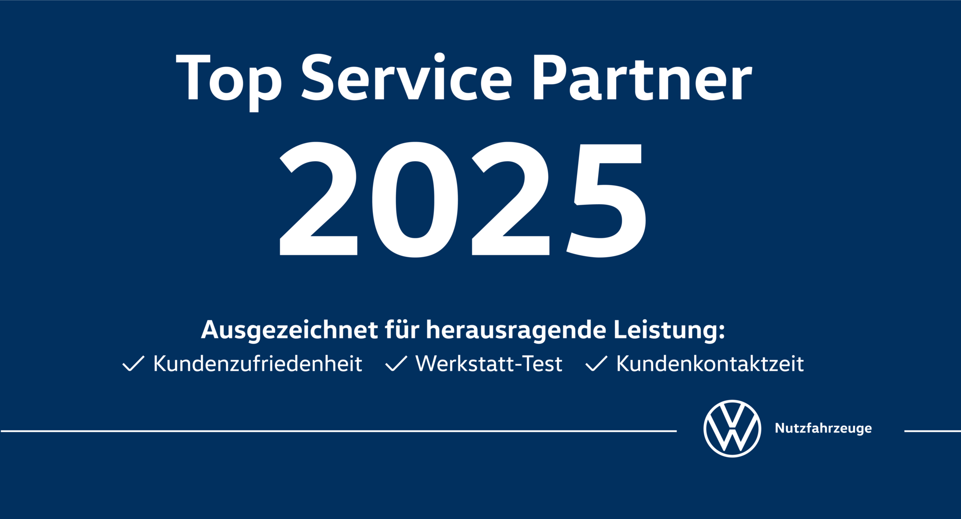 Top Service Partner 2025 – ausgezeichnet von Volkswagen Nutzfahrzeuge.