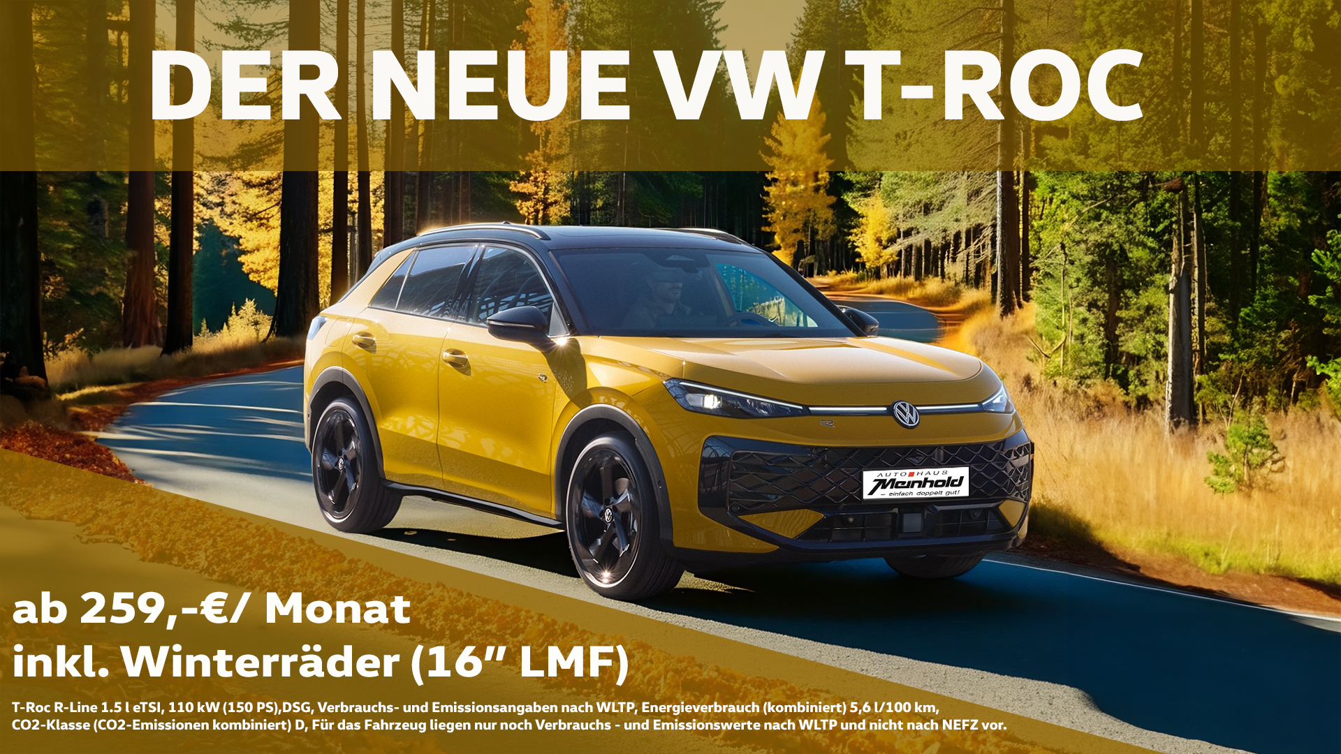 The new T-Roc is now available to order - from EUR 259 per month for the T-Roc Life including complete winter wheels!