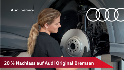What's included? 20% discount on all Audi Genuine Brake Parts (e.g. brake discs, pads, sets, brake shoes, brake calipers and much more) for many Audi models from model year 2021 and older (recognizable via VIN/first delivery). Valid in the campaign period 01.09.-31.12.2025 Your benefits at a glance: